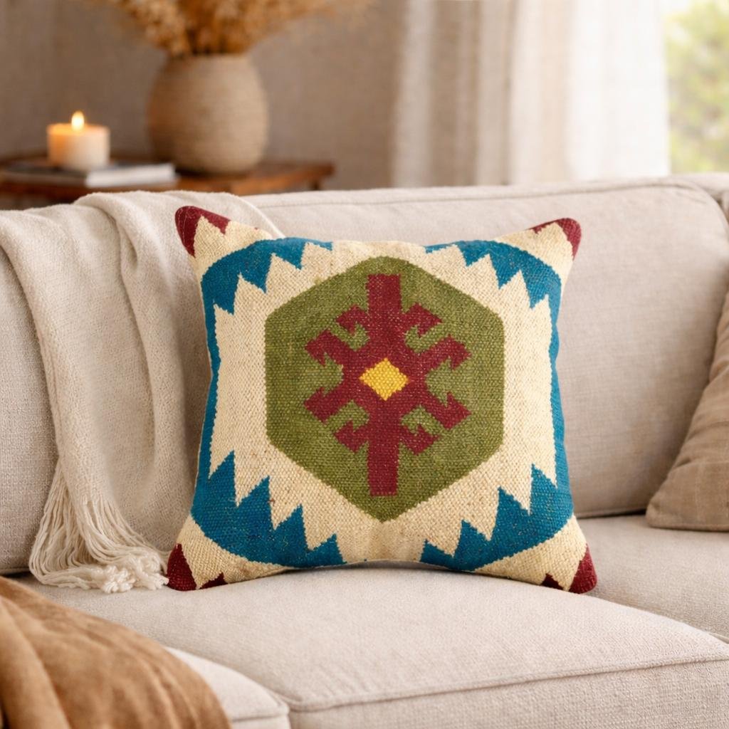 A timeless star motif inspired by mountain skies. Handcrafted from heritage kilim textiles, it brings balance and