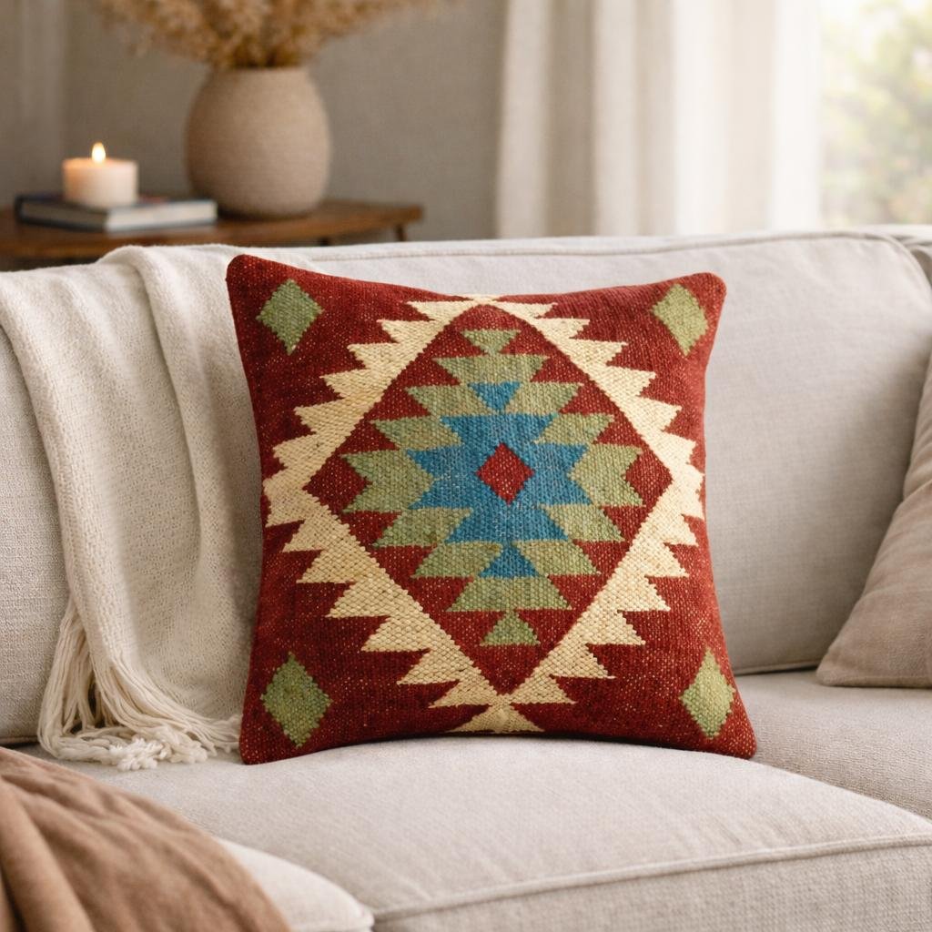 A timeless star motif inspired by mountain skies. Handcrafted from heritage kilim textiles, it brings balance and
